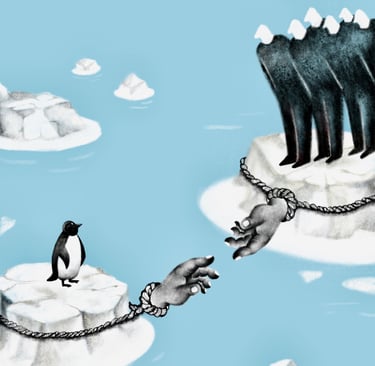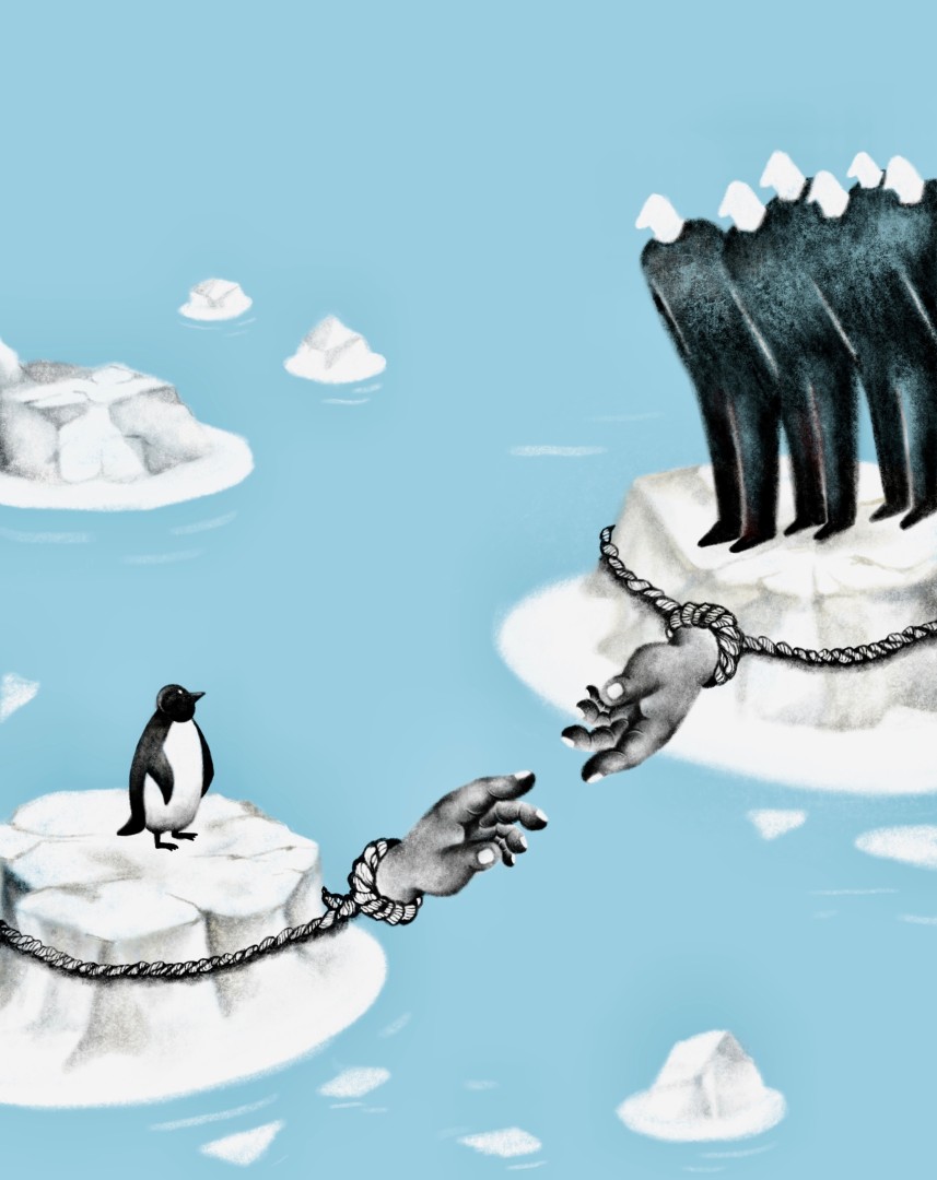 BELOW (ISSUE 2 COVER ILLUSTRATION): ELNAZ MASROUR, CLIMATE CHANGE, 2025, DIGITAL ILLUSTRATION, 11.25 IN X 9 IN