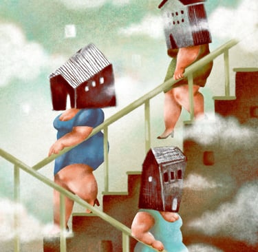 ABOVE: Elnaz Masrour, Not Yet Home, Home Illustration Series, 2025, Digital Illustration, 10 IN X 10 IN